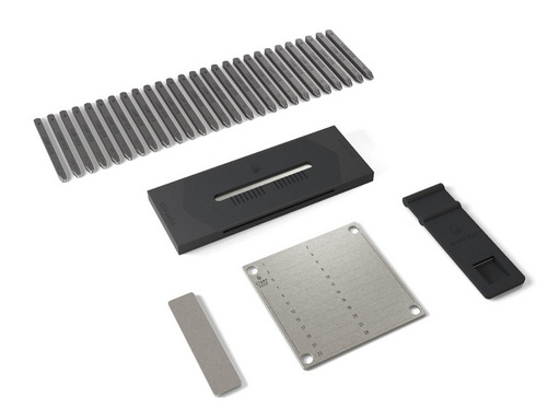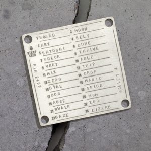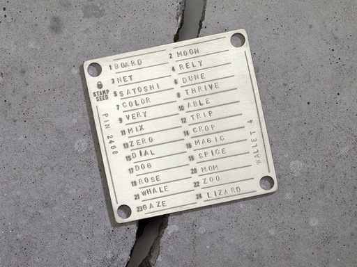- Titanova plošča za 24 besed z 2mm debeline, brušenimi robovi in lasersko graviranimi celicami. Stranski črti za žigosanje dodatnih napisov in 4 luknje za namestitev ali lažje shranjevanje. Zadnja stran je popolnoma prazna.