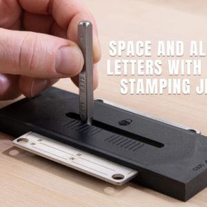 - Kovinske štampiljke črk A-Z. Vsaka štampiljka ima označbo na strani in indikacijsko linijo, ki je v pomoč pri ravnanju črk v šabloni.